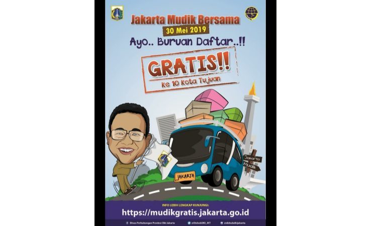 JAKARTA,PenaMerdeka – Sambut Ramadhan dan Lebaran 2019, Pemerintah Provinsi (Pemprov) DKI Jakarta melalui Dinas Perhubungan membuka mudik lebaran gratis. Hal ini pun diungkapkan Gubernur DKI Jakarta Anies Baswedan melalui akun Instagram resminya.