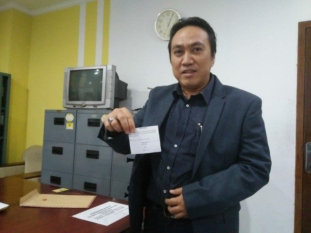 Berkas persyaratan calon pria yang mantan Ketua Forum Pelanggan PDAM TKR periode 2015-2018 langsung diserahkan kepada Ketua Panitia Seleksi (Pansel) Dirum PDAM TB Kota Tangerang.