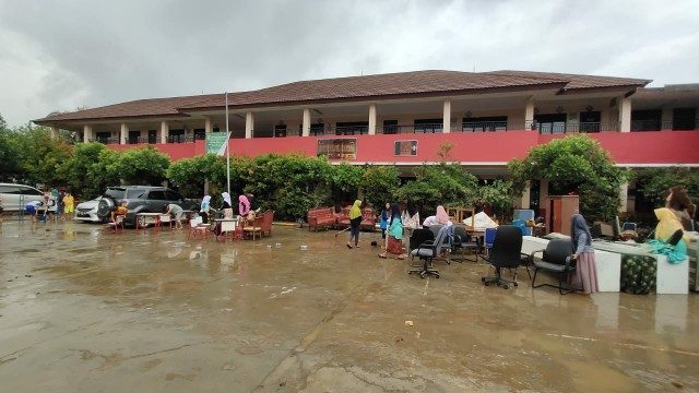 Tidak hanya itu, terdapat barang-barang yang terpaksa dibuang karena rusak usai terendam banjir, seperti buku-buku dana BOS, meja, lemari dan bangku.