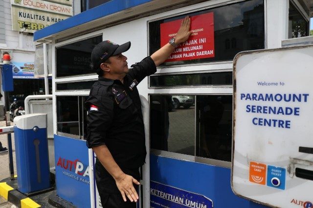 Penyegelan tersebut dilakukan, lantaran PT. Auto Parking menunggak pajak selama 16 bulan lamanya.