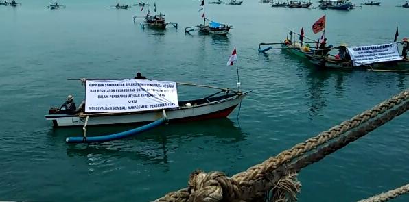 Gunakan Perahu, Nelayan Lebak Geruduk Pelabuhan Semen Merah Putih