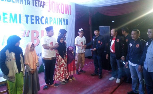 Sorak-sorai Pendukung Paslon 1 saat Nobar Debat Capres Kedua di Kota Tangerang Senin, 18 Februari 2019